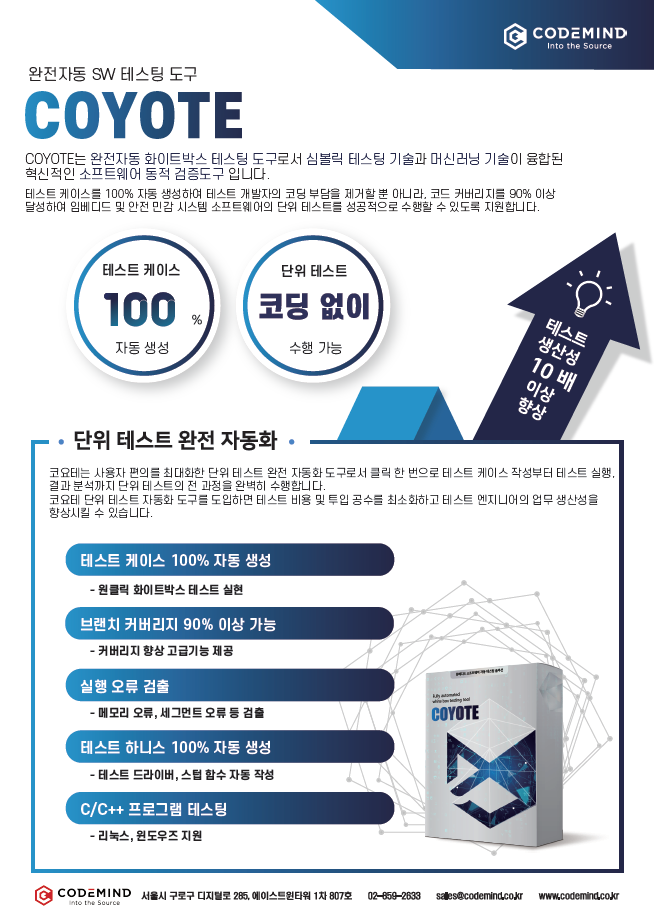 코드마인드 단위 테스트 완전자동 테스팅 도구 "COYOTE"Products 2021. 1. 26. 16:43